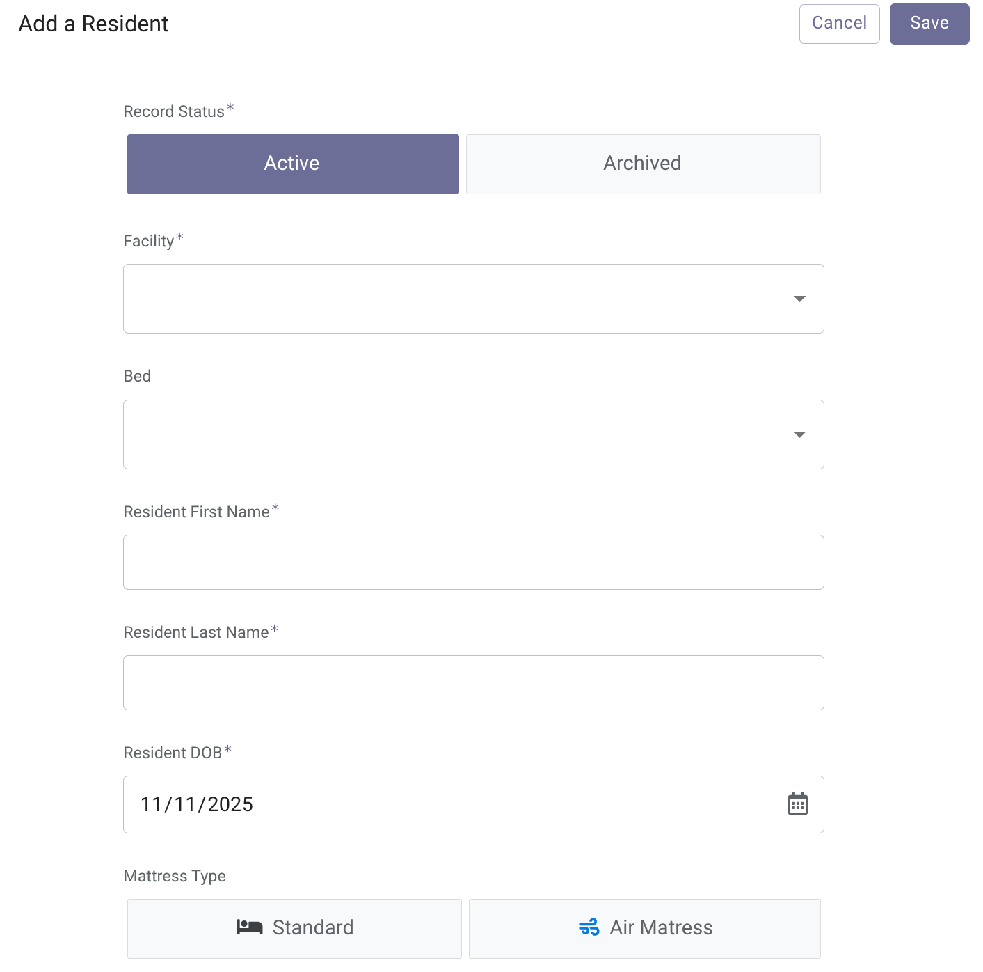Once you are in the correct resident's file (either existing or newly created), a new button will be available.