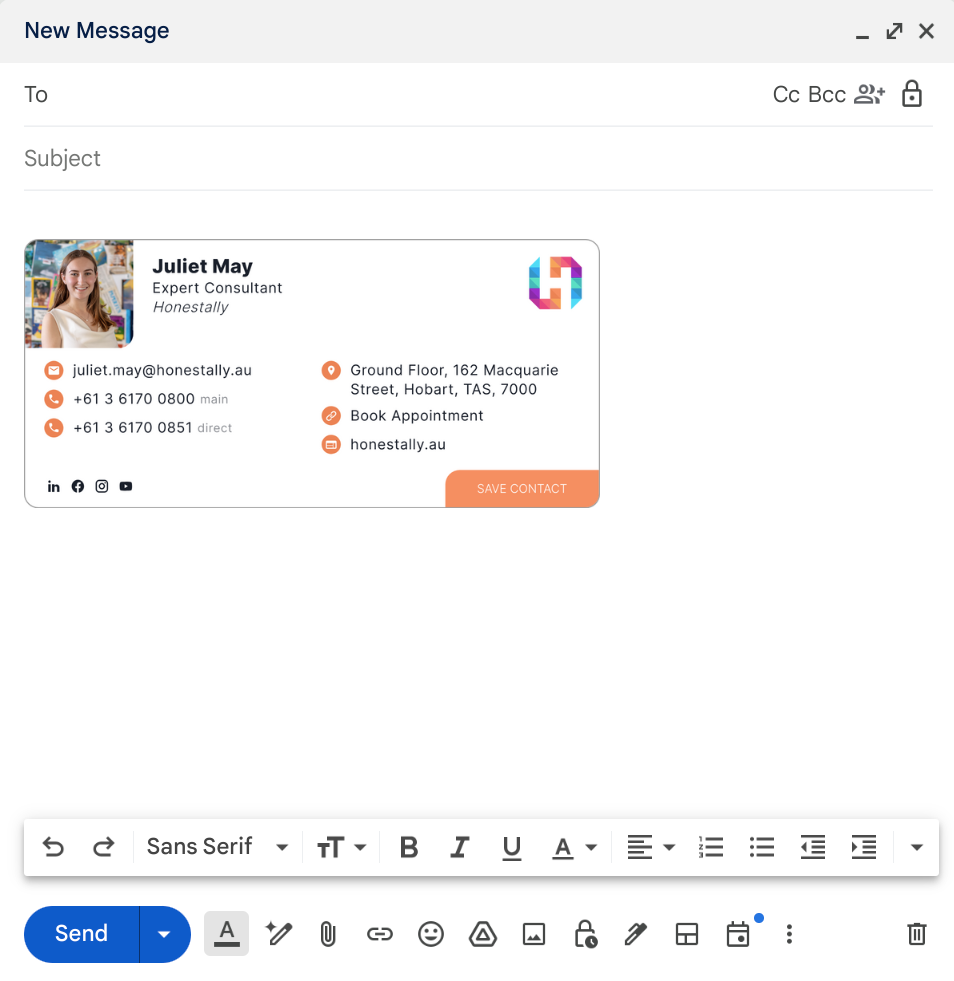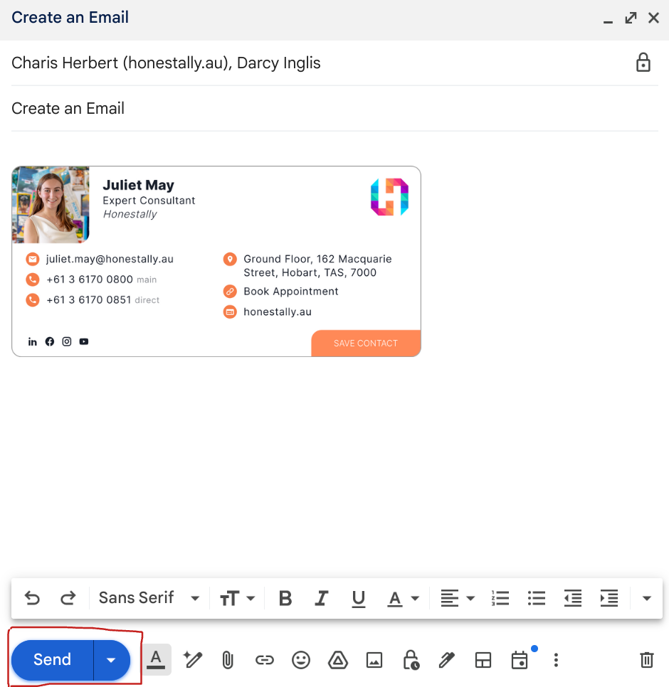 Review the email for grammatical errors and click Send on the bottom left of the email draft pop-up.