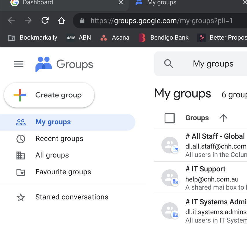 Video Demonstration Using Google Groups Open Google Groups by going into Google Chrome, view your Dashboard and click on Groups for Business in Your Apps. On the left of your screen Conversations, Labels, Members, About, My membership settings will ...