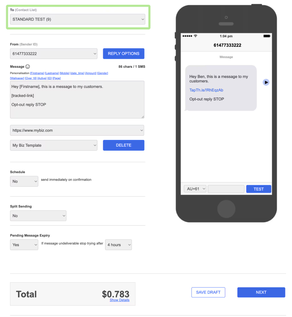 Finally, select 'Next' when ready to send your message.