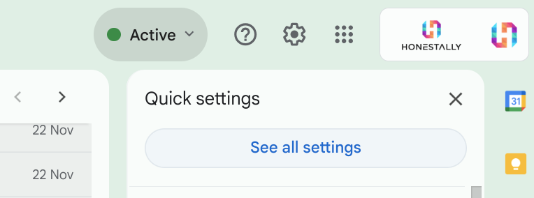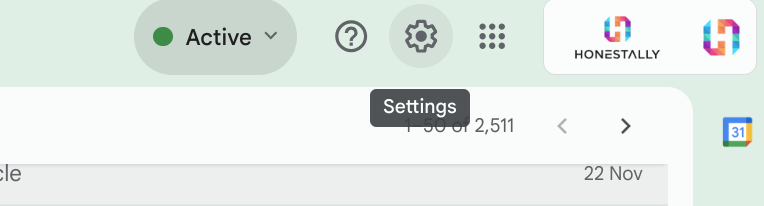 - At the top right of your Gmail page, click on the cog to open Settings.
